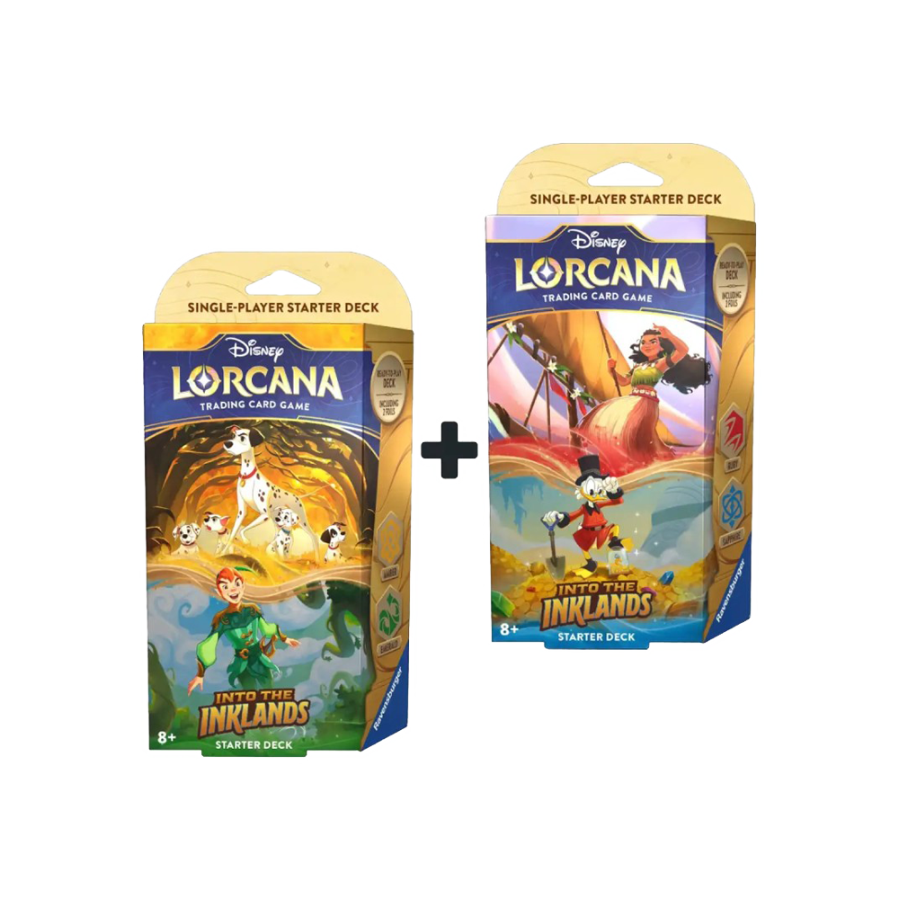 Disney Lorcana – Temporada 3: “Into the Inklands” Pack Mazo de Inicio Ambar-Esmeralda + Rubí-Zafiro INGLÉS