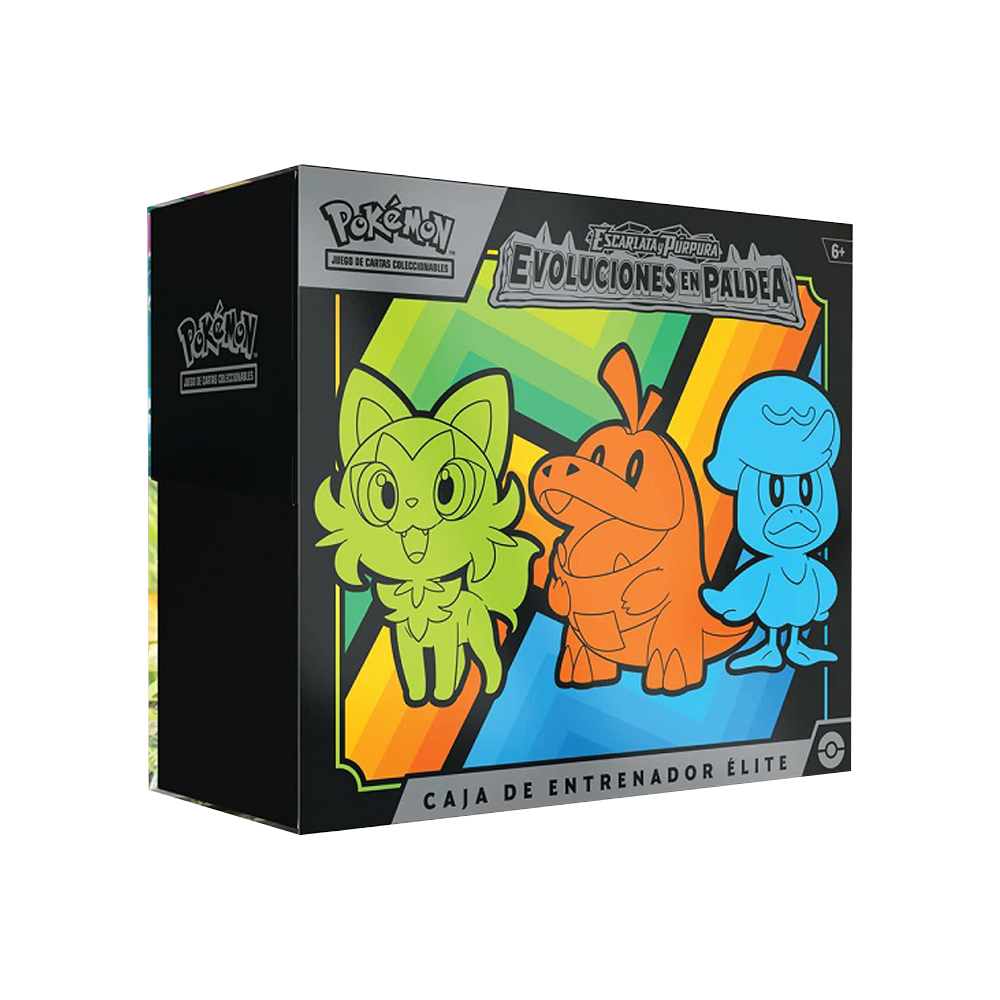 La Caja de Entrenador Élite de Evoluciones en Paldea es un producto del Juego de Cartas Coleccionables Pokémon, basado en la expansión Evoluciones en Paldea (Paldea Evolved). Esta expansión continúa la era de Escarlata y Púrpura, presentando Pokémon ex Teracristal y nuevas cartas de los iniciales de Paldea y sus evoluciones.